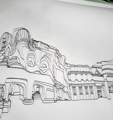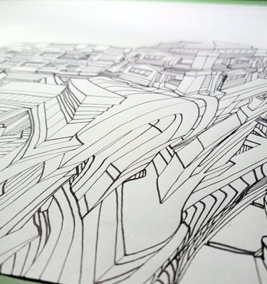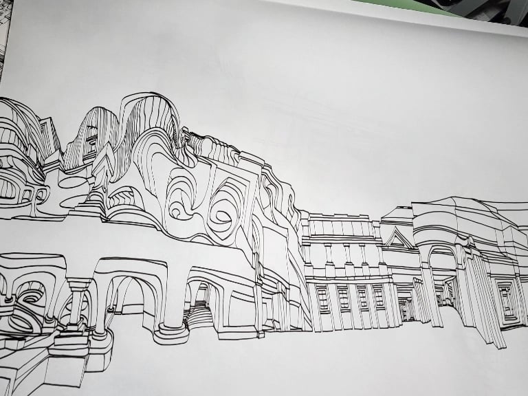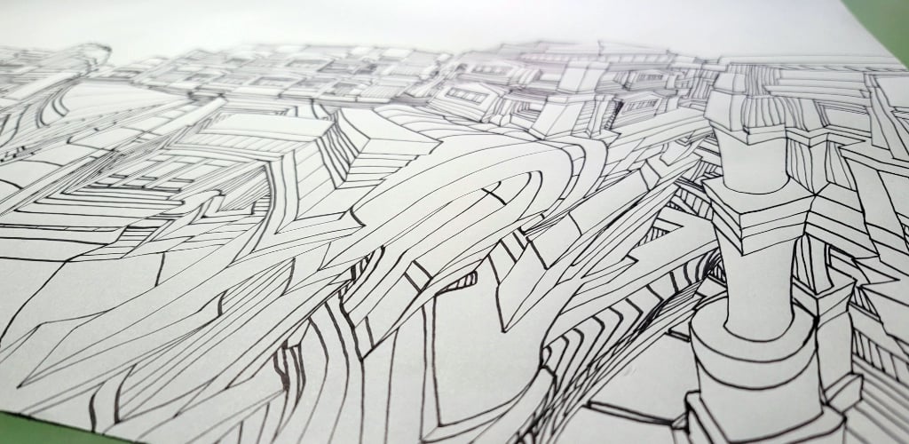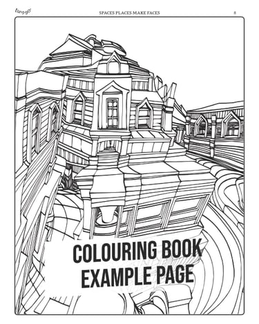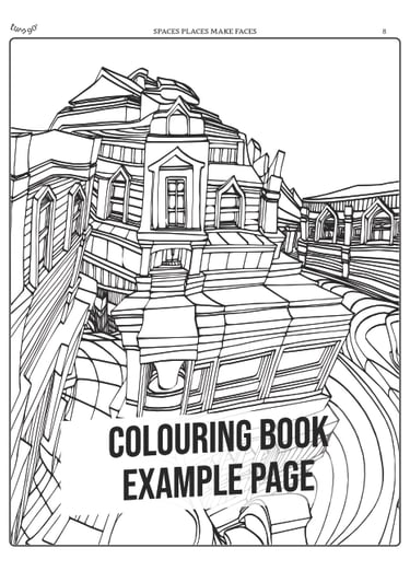 Spaces Places Make Faces is a visionary colouring book series that transforms exaggerated, hand-drawn architecture into a playground of hidden identities and surreal perspectives.